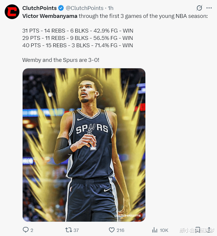 北京时间10月27日,马刺118-107大胜篮网豪取三连胜,马刺时隔六年终于在开赛季拿到了一波三连胜,圣安东尼奥马刺复兴的迹象来了,或许本赛季的马刺有希望重返季后赛行列,他们复兴的关键就是维克托-文班亚马再度进化。