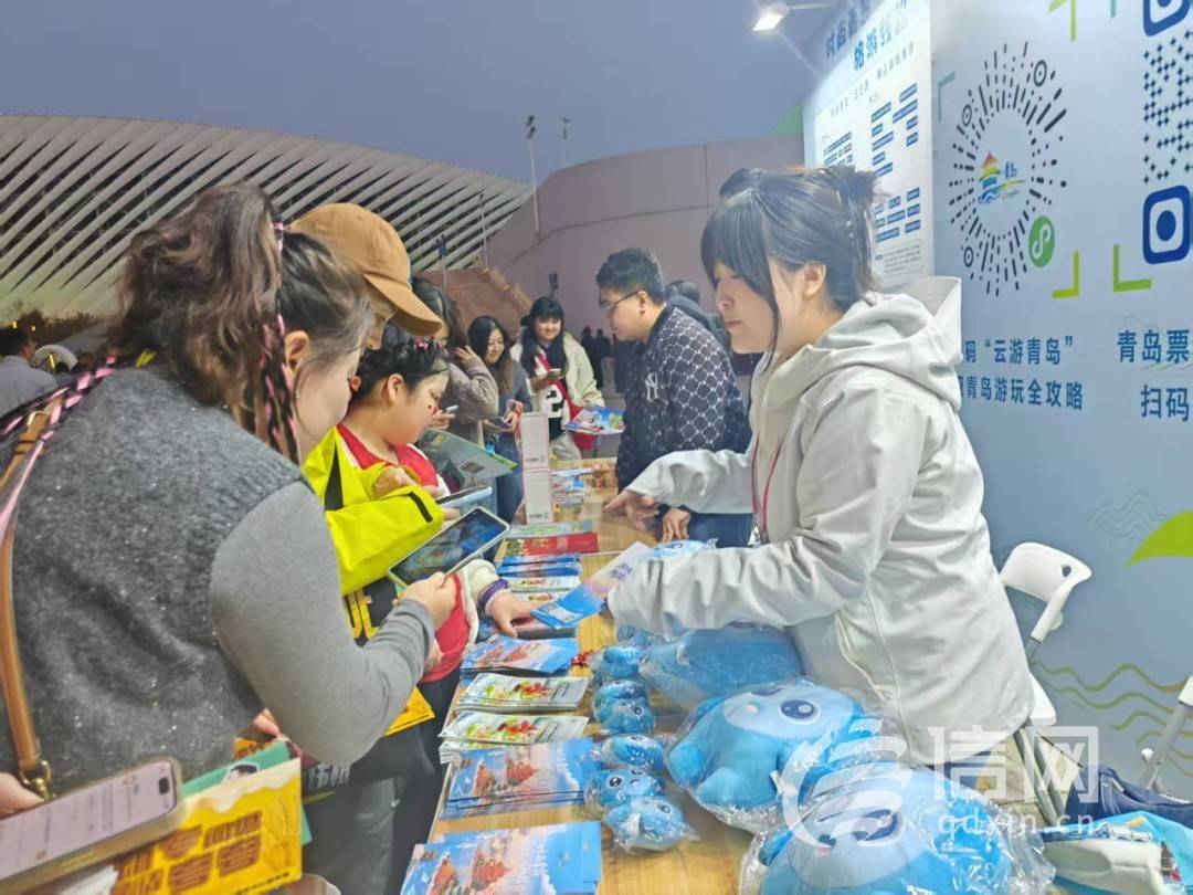 文旅志愿者向歌迷介绍“票根经济商家联盟”专属福利。(来源:青岛市文化和旅游局)